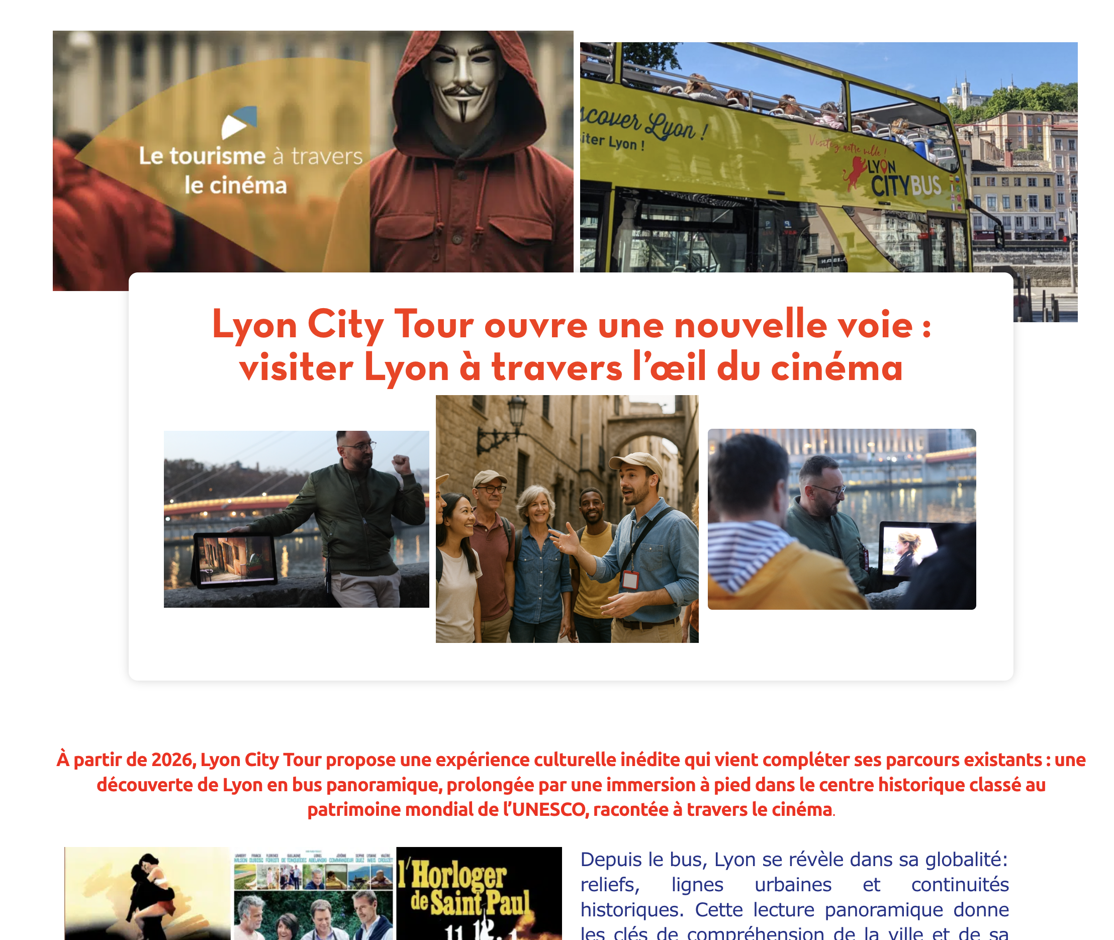 In Lyon, the city’s history can also be told through images. The Bus & Cinema experience offers a new way to explore the destination by combining urban discovery, cultural storytelling, and cinematic heritage.